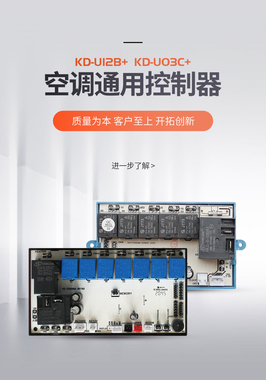 公司目前有數(shù)十種專利,并具備生產(chǎn)及工藝技術(shù)。年產(chǎn)家電控制器一百萬(wàn)套,產(chǎn)品廣泛用于空調(diào)、中央空調(diào)、電熱水器、